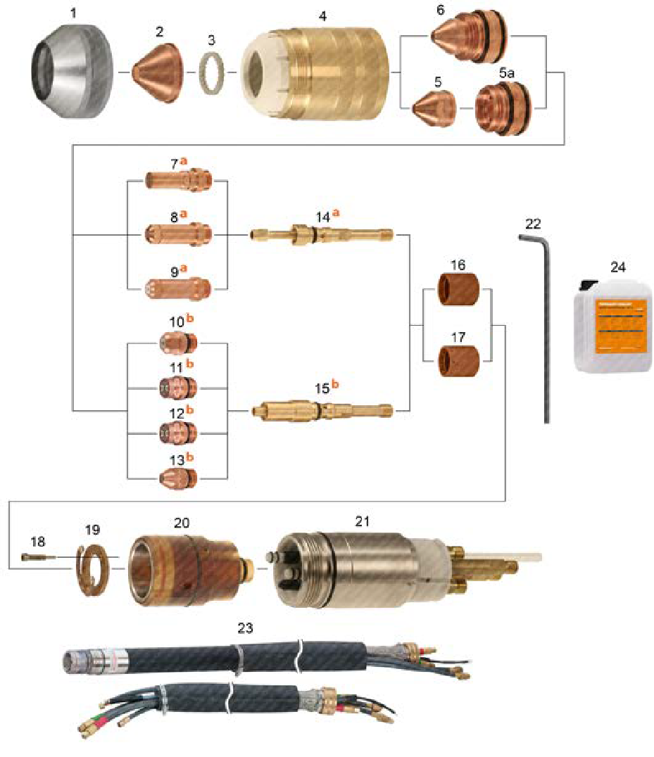a, b, c, d. – This symbols always point to the part/s which must be used only as a set with another pointed part/s.