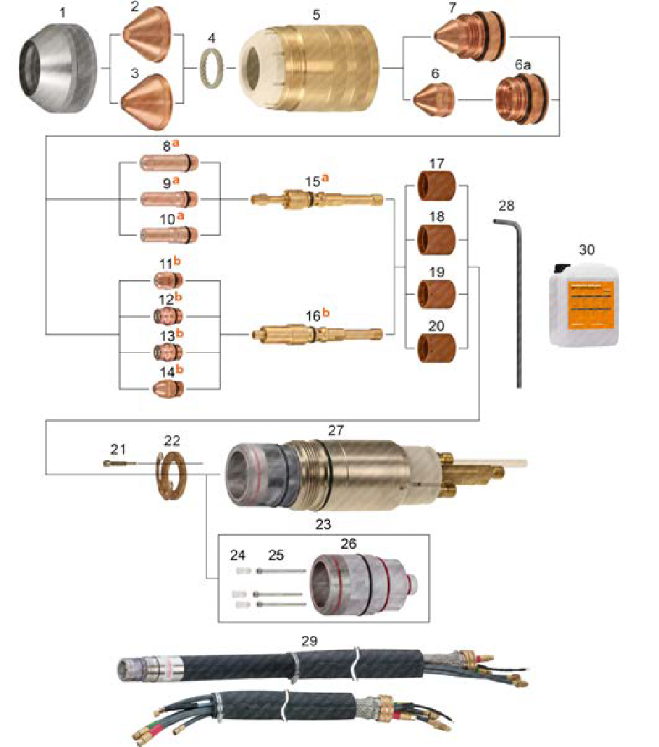a, b, c, d. – This symbols always point to the part/s which must be used only as a set with another pointed part/s.