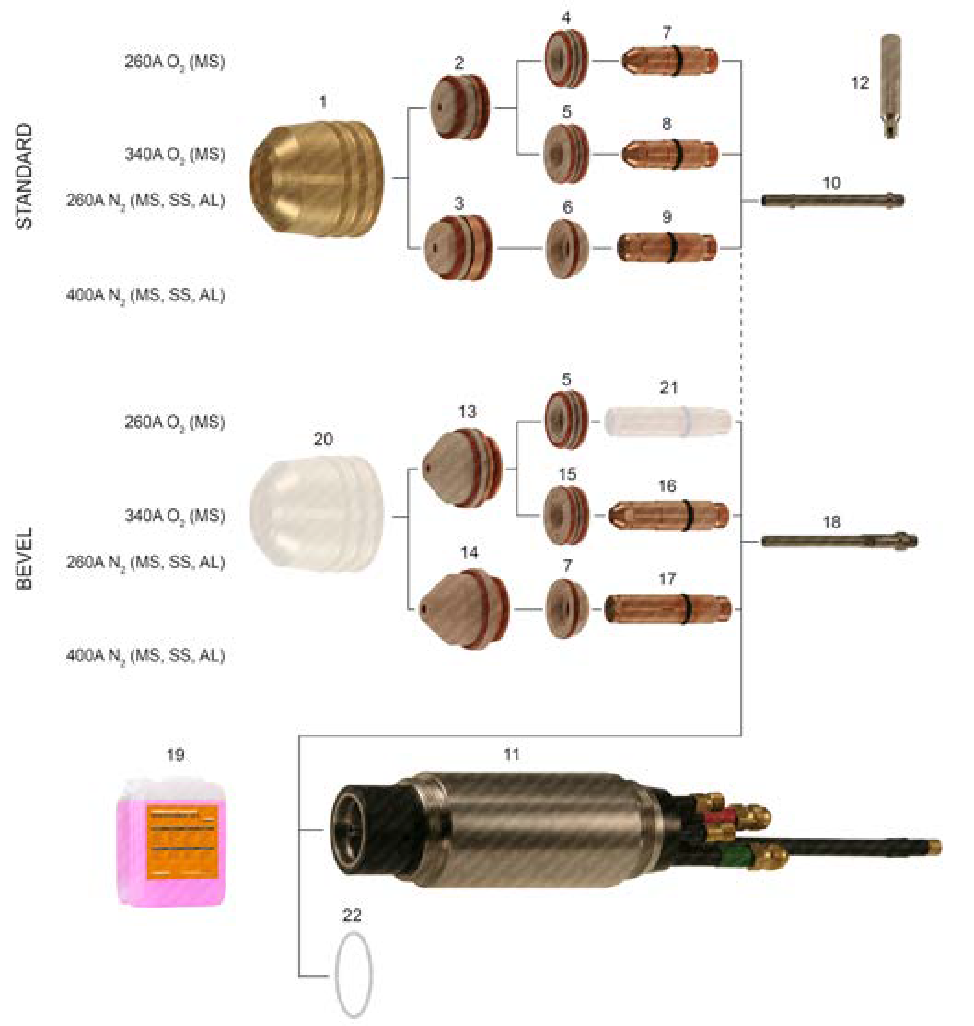 Nozzle 260A, 340A, Bevel, O , CCW 2